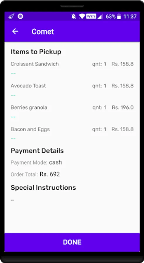 Comet is an application built for delivery executives