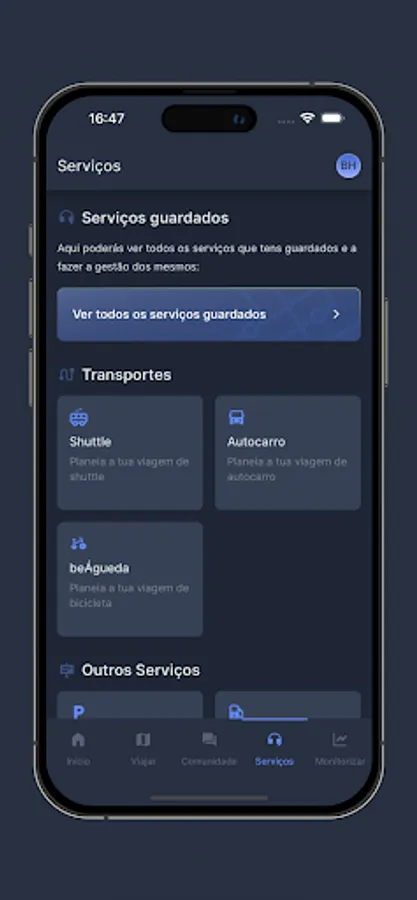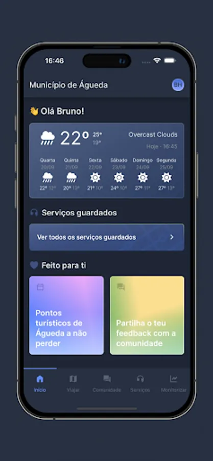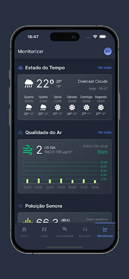 The application aims to provide residents with real-time data on the mobility services available, particularly relating to parking occupancy, electric vehicle charging station occupancy, bicycle availability, environmental data such as air quality and noise, among others. Through the application, another communication channel is opened with citizens and the sharing of data and information is promoted.