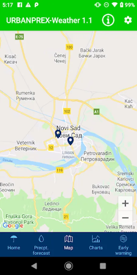 Through the project, two dense monitoring precipitation networks will be installed in the most-populous cities of the Programme area: Novi Sad (Serbia) and Szeged (Hungary). Continuous data recording, transmission and processing, as well as real time display of the processed data in a spatial (i.e. map) form will be useful for citizens (i.e. individual adaptation) and public institutions (e.g. traffic and water management, city government) of the Cross-border region.