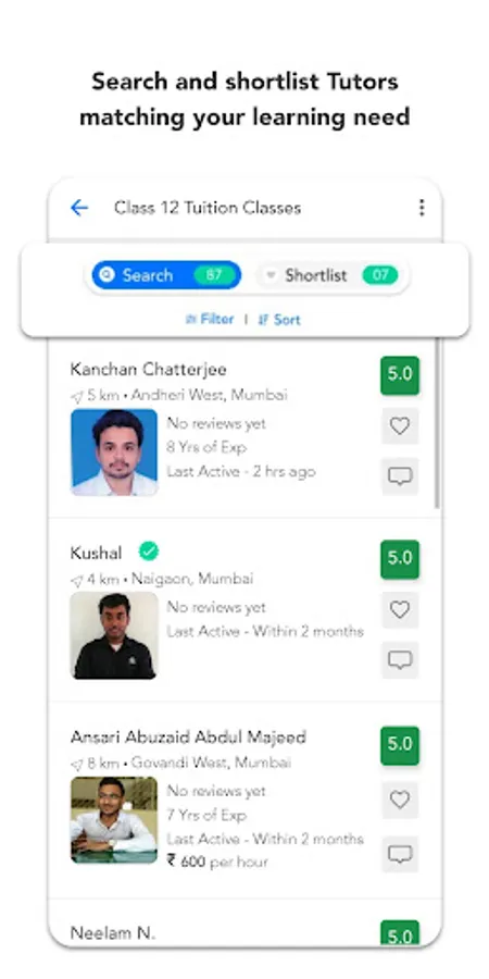 3. Shortlist & Contact: If you like a profile, you can contact them directly by calling or messaging them. You may also shortlist the profiles and check them later on ‘Search/Shortlist’ screen. You can call or message the Tutor by clicking on the Call/Message icons on the profile screens.
