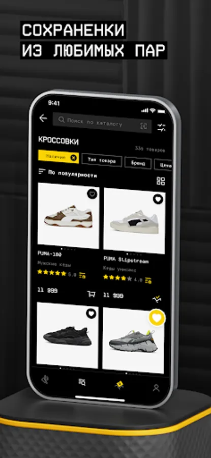 The pocket version of our sneaker store has all the benefits of the official online store and even more. In your personal account, you can keep track of your bonus balance, track orders, add items you like to your saves, and study your purchase history.