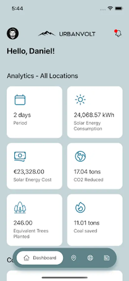 The UrbanVolt App is a one-stop shop for everything related to your clean energy journey. Here you can track your solar energy performance, marvel at your CO2 reductions, connect with our Customer Success team, manage your payments, and even share your impact with the wider community.