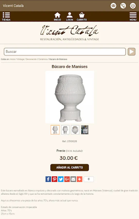 Vicent Catalá Restoration, Antiques & Vintage is a shop / workshop featuring pieces from different styles and periods. An antiquarian researches, search and select beautiful pieces manufactured and built with noble, national or materials anywhere in the world. In short, timeless products that can shine in your home for a lifetime.