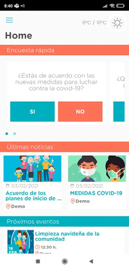 You choose between the options offered by the app: carry out a survey, send an incident, view news or events.