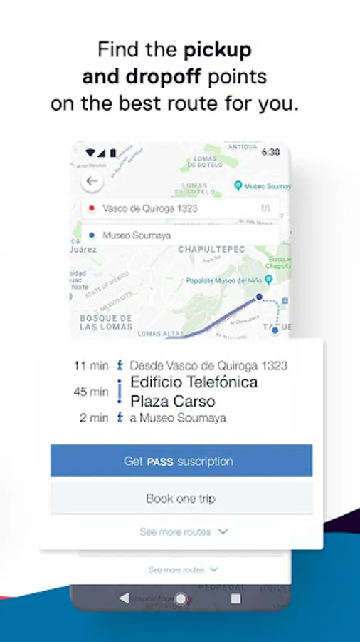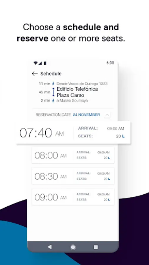 Find the routes you use on a daily basis and secure a seat in safe and optimized vans.