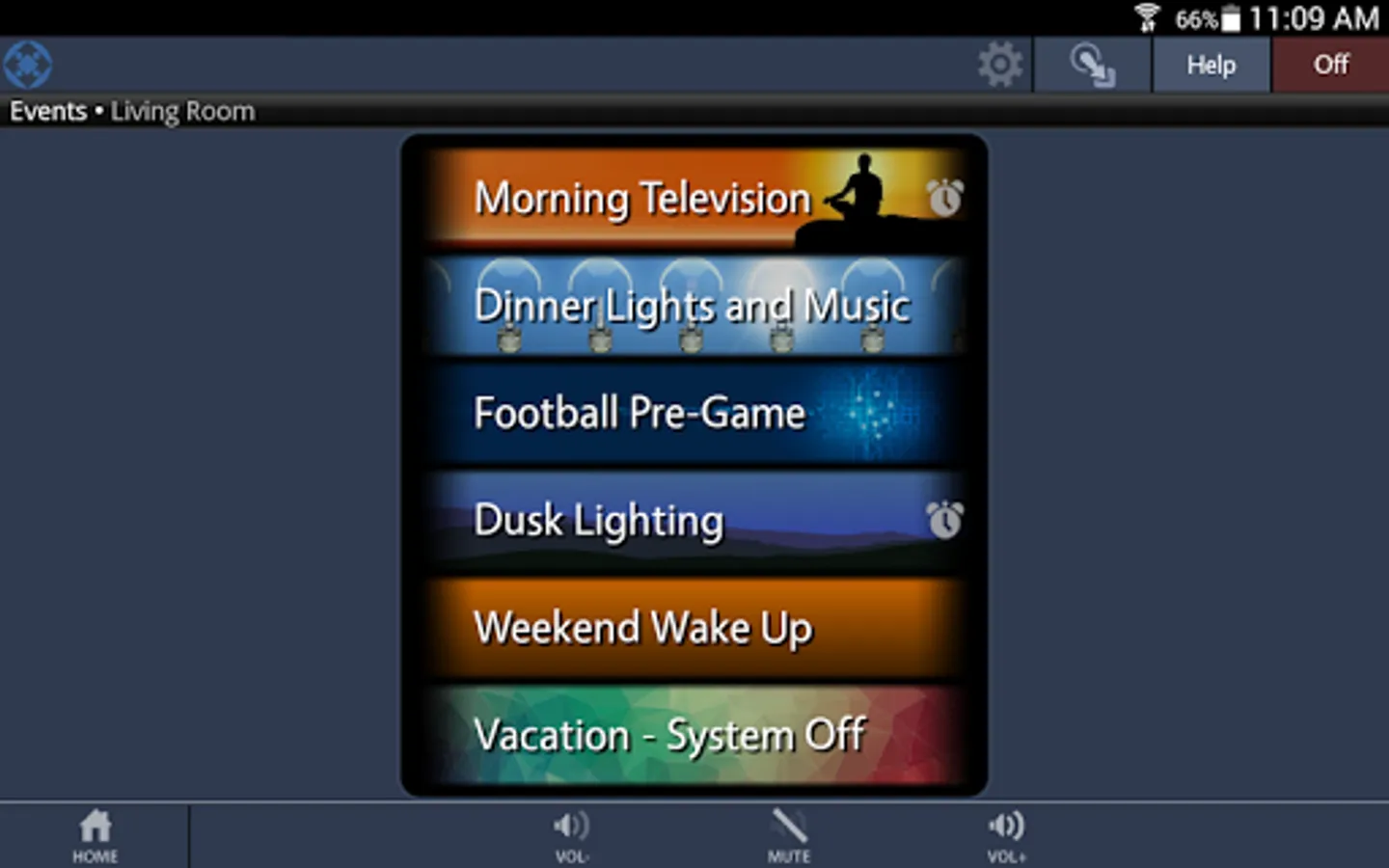The MX HomePro™ mobile app for Android™ devices sets URC® MX HomePro apart from other home control systems. One touch of an icon on your smartphone or tablet enables control of your entertainment plus smart home devices. Check your security system, turn on pre-set lights, start the music and settle into movie night in a way you never thought possible.