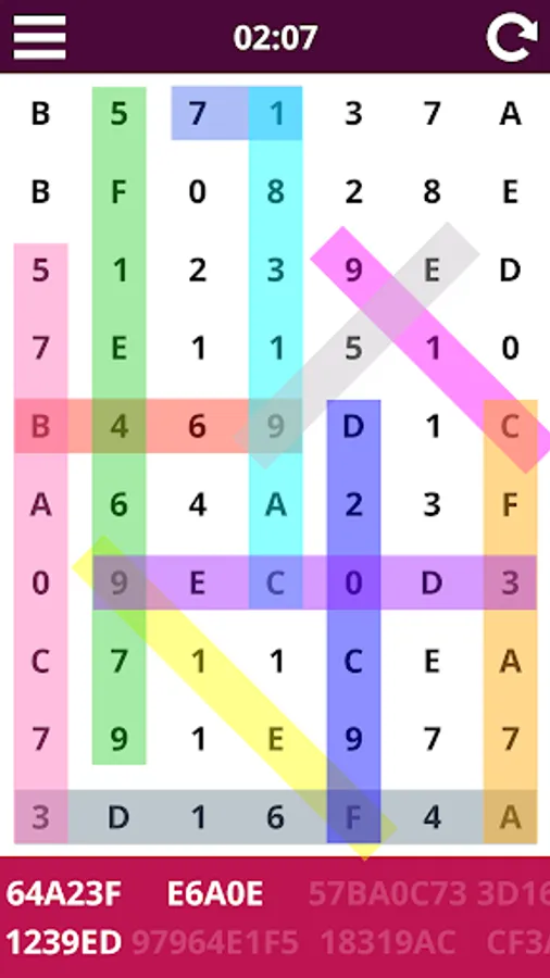 ✓ Hexadecimal: Puzzle of numbers from 0 to 9 and letters from A to F
