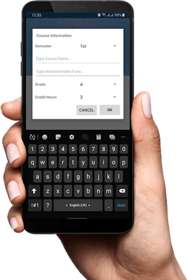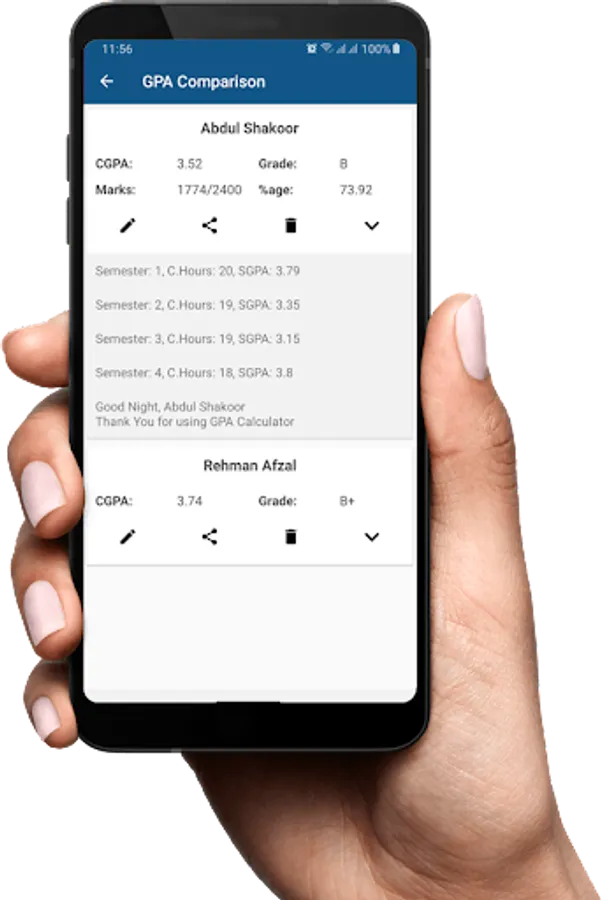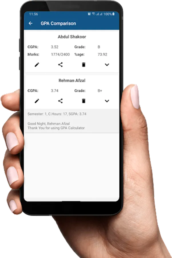 GPA Calculator is combination of GPA Calculator, SGPA Calculator and CGPA Calculator.Calculating GPA, SGPA or CGPA was never this easy. Using GPA Calculator, you can even calculate GPA of course-work or project or thesis of your degree of university recognized by Higher Education Commission, Pakistan. Just download and install this app to get your result with single click...