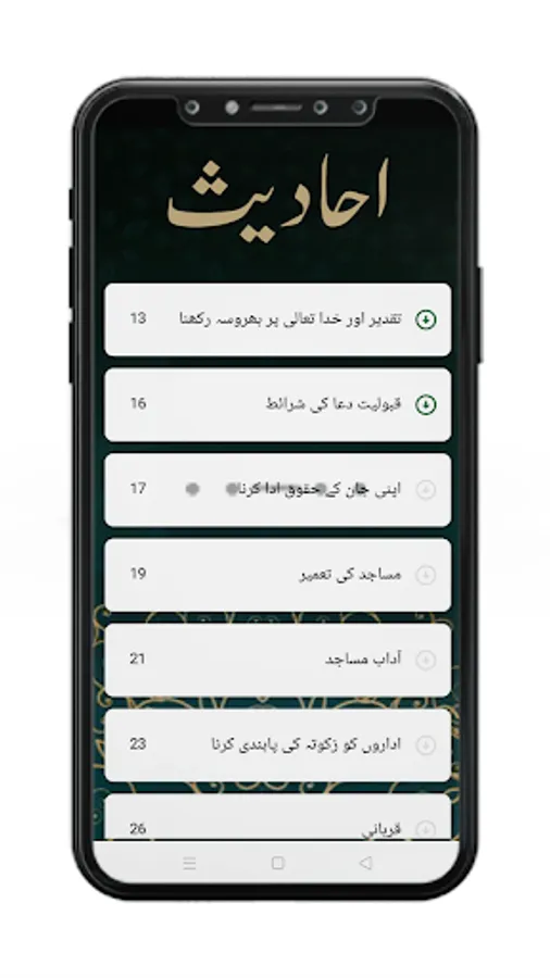 Hadees is known as saying of Prophet Muhammad SAW, Hadith are known as islamic laws. This Hadees book in Urdu is collection of 1000 ahadees listed by different topics, User can select specific topic of Hadith and can find specific Hadees against selected topic.