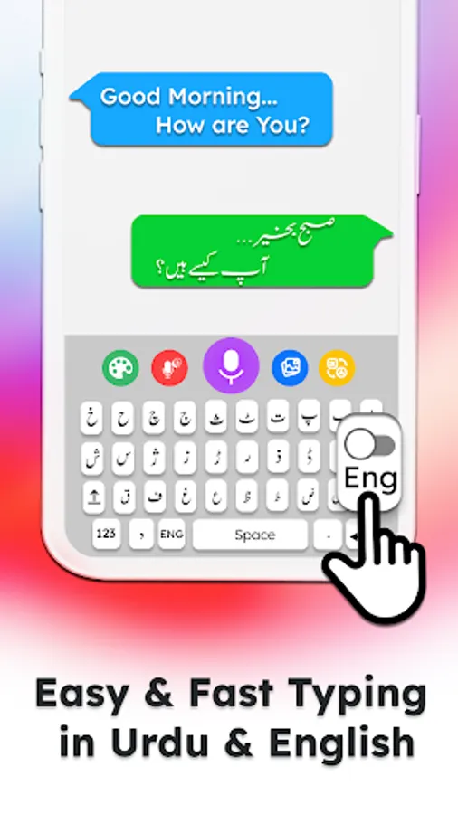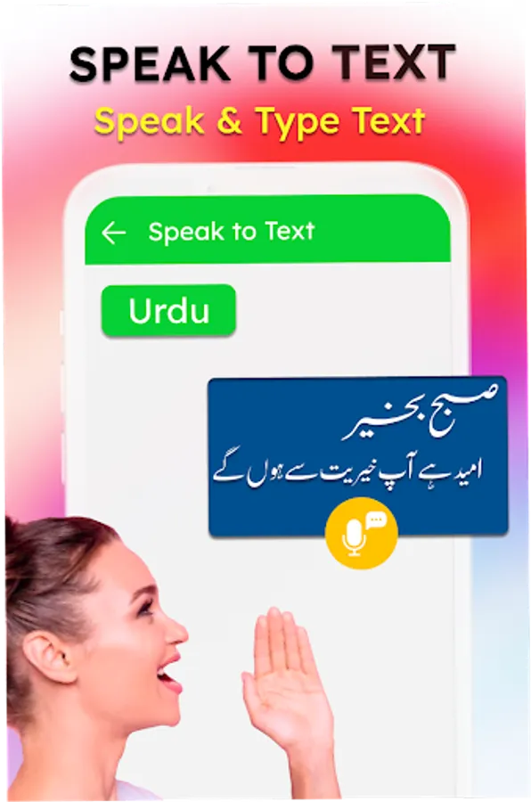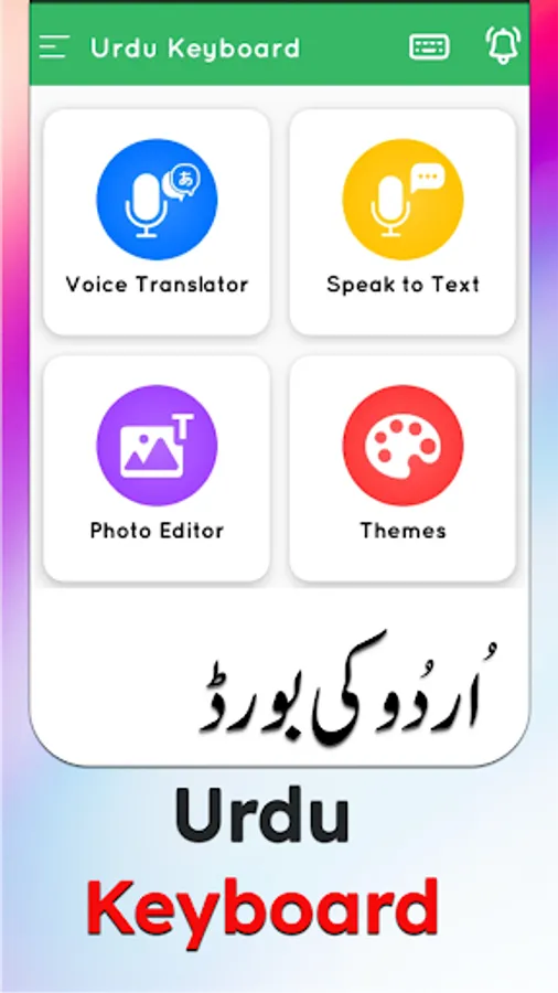 Phonetic Urdu keyboard is easy to use and help user to write in Urdu language with free keyboard translation. Keyboard translate functionality in ordu voice typing keyboard is totally free of cost you can easy type your words in rbud language