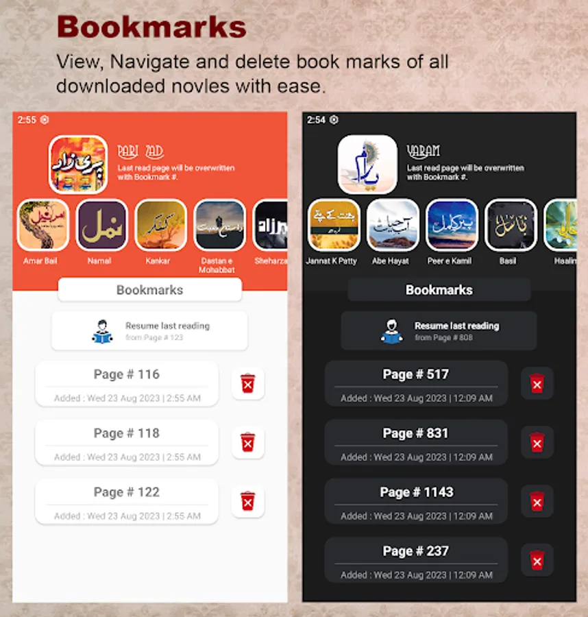 14. Open bookmarks of any novel from main menu.