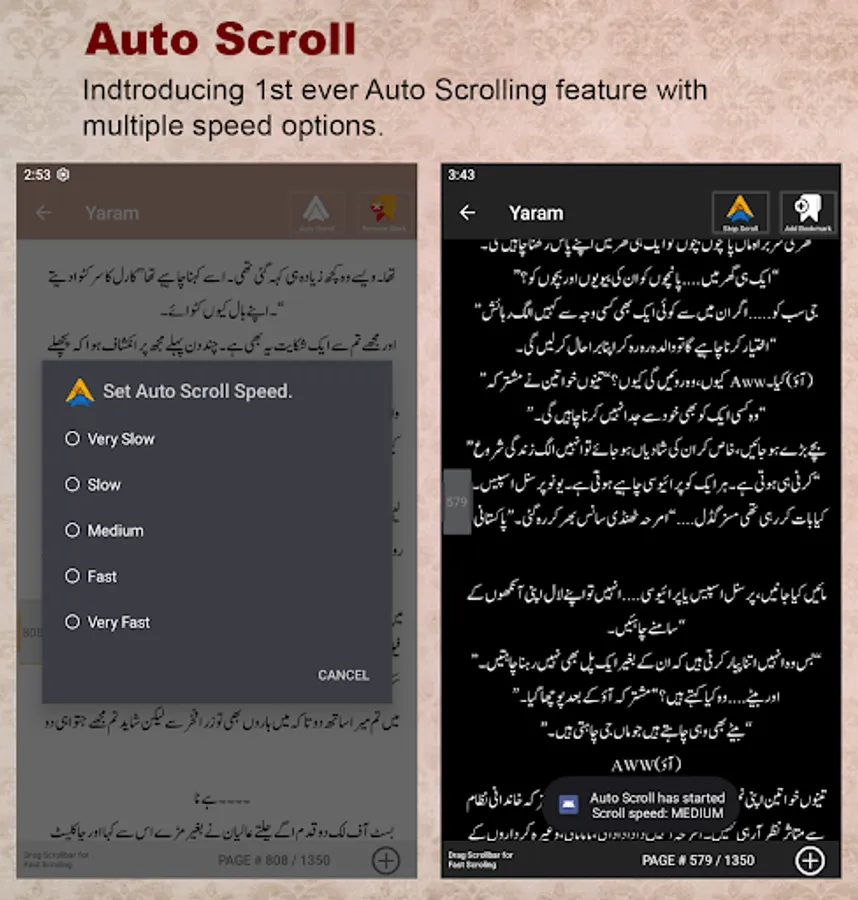 8. Touch Less reading with Auto Scroll with Different Speed Levels.
