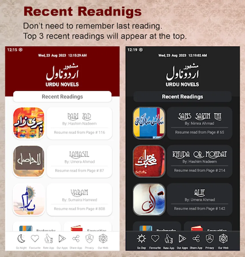 3. Recent reading section | Don't need to remember last reading novel. Recent Reading include last 3 Novels.