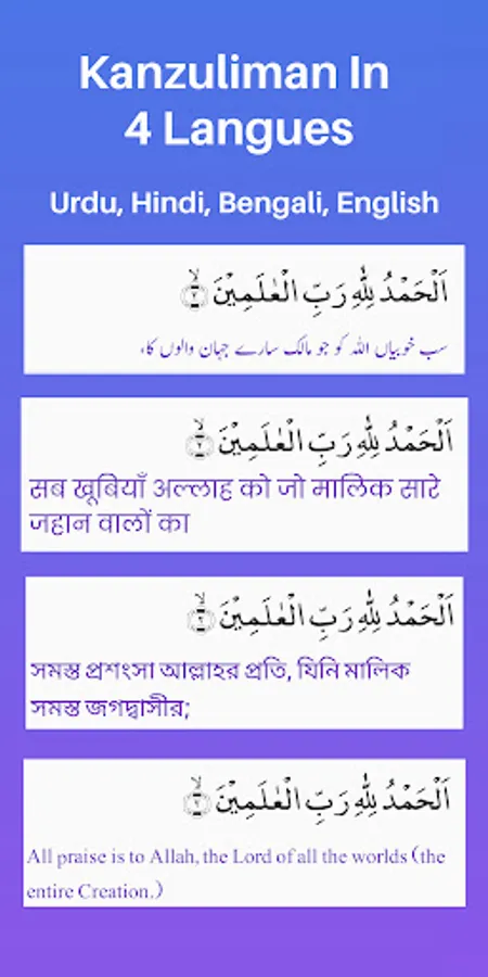 Quran Kanzul Iman with English Urdu Translation (tarjuma) and tafseer by ibn kathir in both languages.