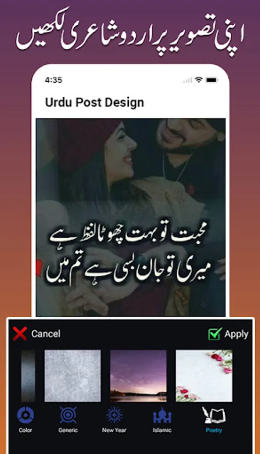With this Photo Editor:Post Maker/Editor: Text on Photo app you can create whatever you want. Create quality content with this post planner app, the Photo Editor:Post Maker/Editor: Text on Photo is designed to help people to create urdu post, graphics and visual content in all languages.