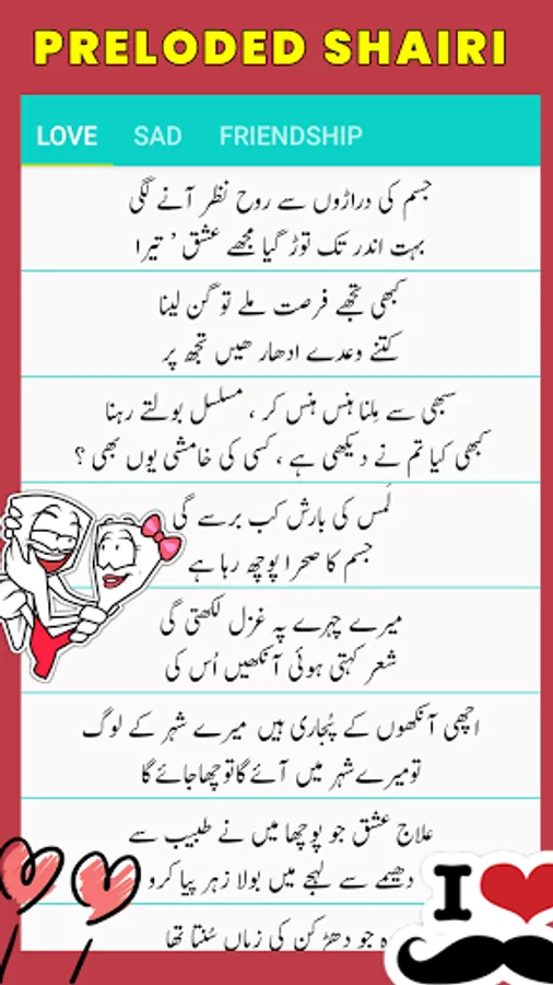 This App is amazing and latest poetry design application. Those people who want to express their love with poetry write Love-Messages ,Urdu poetry shairi ,Urdu Ghazal, Poems, romantic shayri,love poetry on your own Photo.