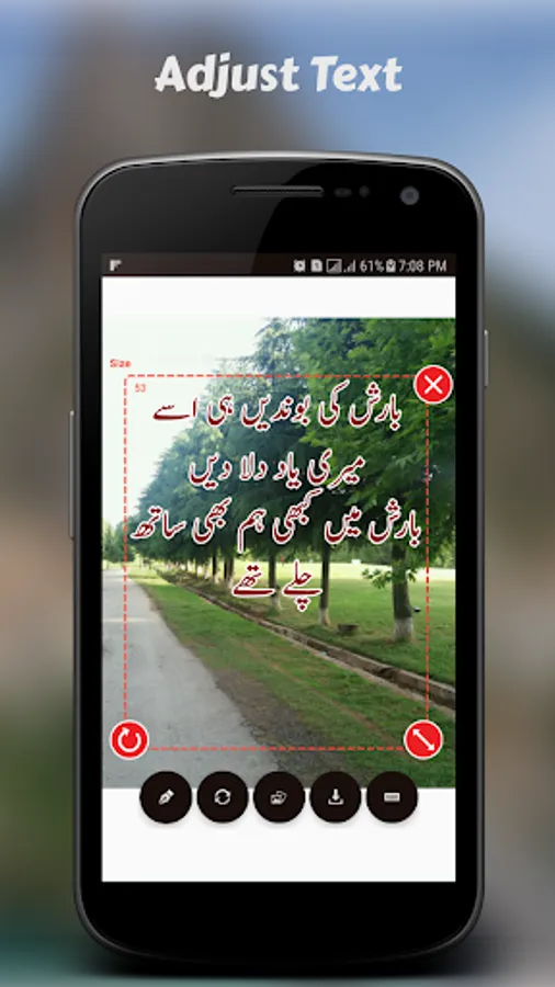 Text Photo- Urdu and English Poetry on photo app and amazing app contain different fonts of text which helps in changing style of your desire text style.You can also rotate your picture in this app and can adjust best angle of photo as well as your text,poetry,quote etc.