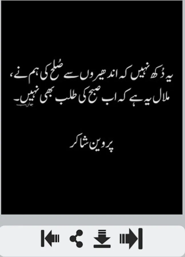 We are constantly working hard on making the app better and more useful for you. We need your constant support to get going. Please feel free to email us for any queries/suggestions /problems or if you just want to say hello. If you have enjoyed any feature of the “Urdu Poetry” app, do not forget to rate us on play store and share among your friends.