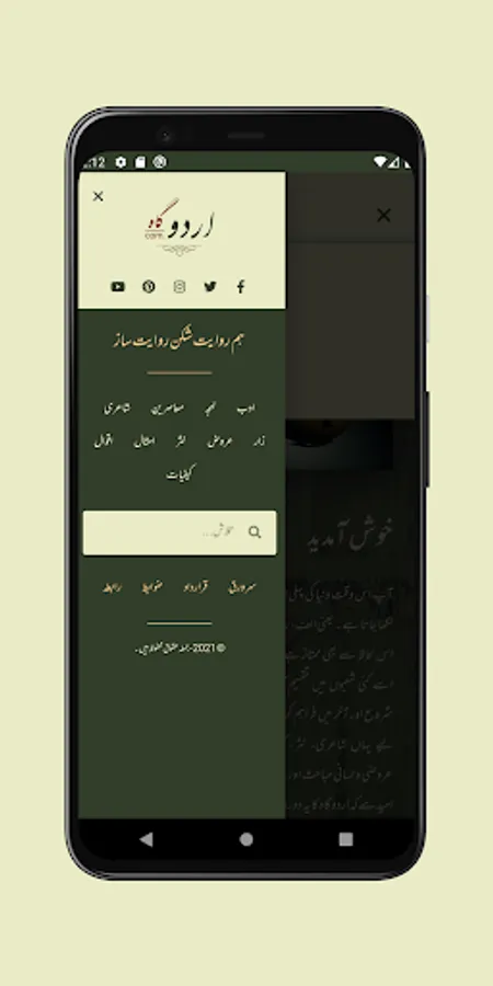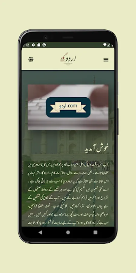 Urdu Gah is one of the highest-rated Urdu apps on Google Play Store. It is a webview application of the first Urdu website which can be accessed on an Urdu address, اردو.com. As the largest personal Urdu blog on the internet, it contains texts and multimedia divided into multiple sections.