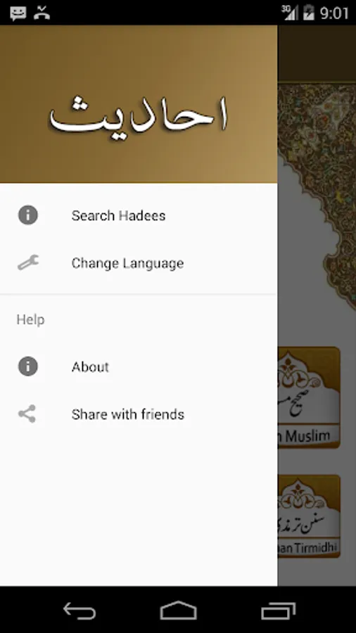 • Share option let you distribute beautiful Ahadees with loved ones.