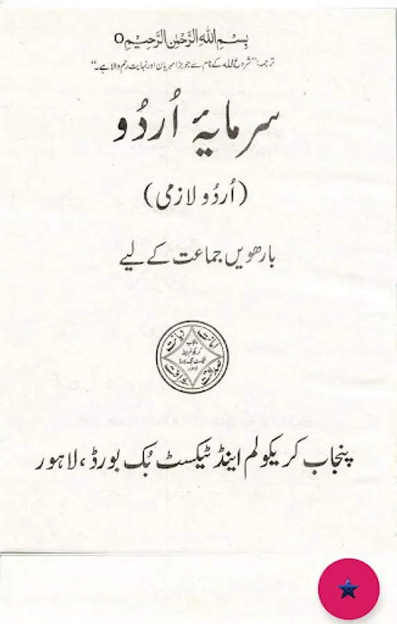 If you are in search of Textbook of Urdu Class XII (Sarmaya Urdu Book-2) then you are at right place. This book (Sarmaya Urdu Book-2) is for Intermediate Part-2. The book is compulsory for 12th class. This book was released by Punjab Curriculum and Textbook Board (PCTB). This book was printed by Abid Press, Lahore and published by Razaq Book Depot, Lahore in 2016. The book is approved by the Fedral Ministry Of Education, Islamabad.