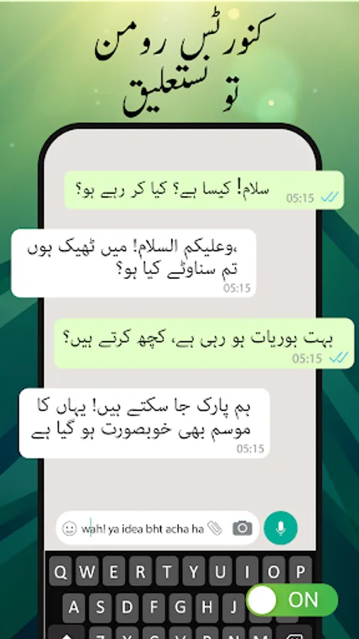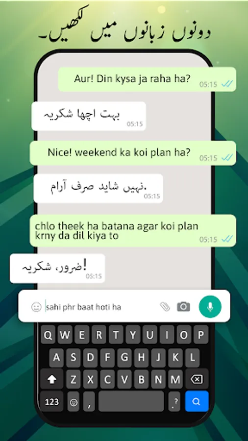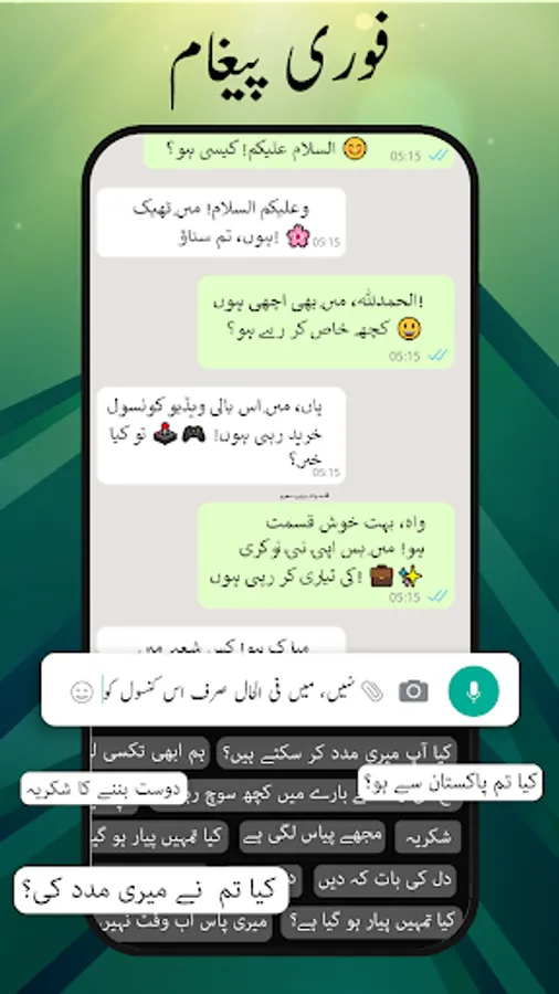 you can type in different fonts like Nastaliq fonts style it is best font style for Urdu writing because it gives outclass look to your chat in Urdu, Punjabi or rumen ordu with thousands of emoji’s .user can change keyboard background with beautiful theme also can set beautiful Pak flag as the theme to make outstanding look .or can use for Urdu taleem (educational purpose) while online teaching.