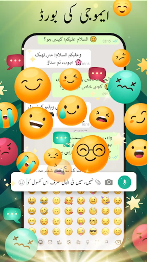 Urdu writing keyboard with lots of new emojis options to show your expression to your beloved.