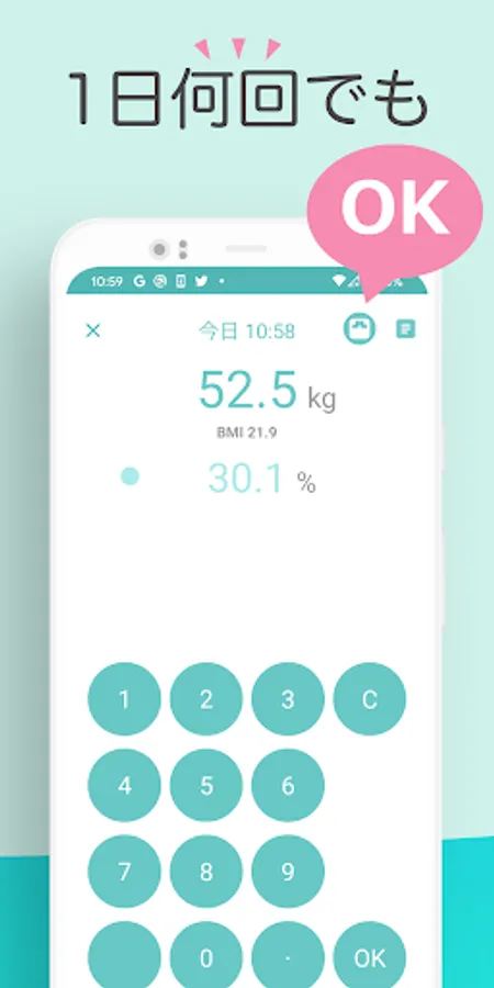 The input screen for weight and body fat percentage is simple and easy, and it is well received.