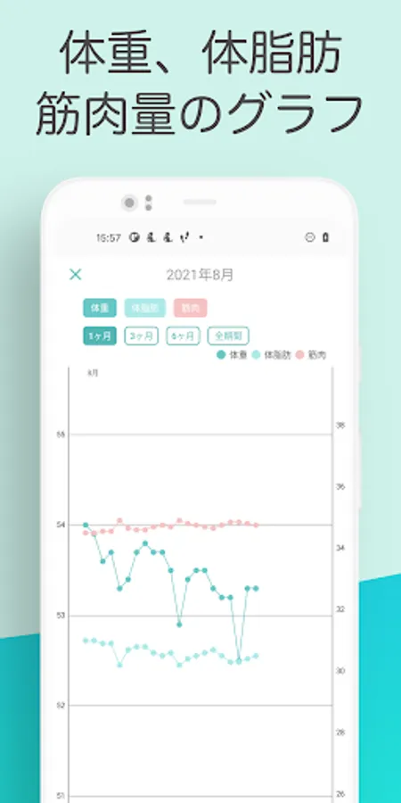 ■ You can compare changes in weight, body fat percentage, and muscle mass on the graph screen.