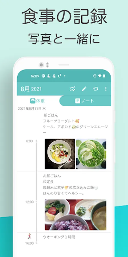 If you want to record the details of meals and exercise, you can register memos and images from the calendar.