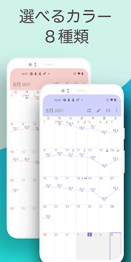 By recording on the calendar screen, you can easily manage your weight with graphs and stamps.