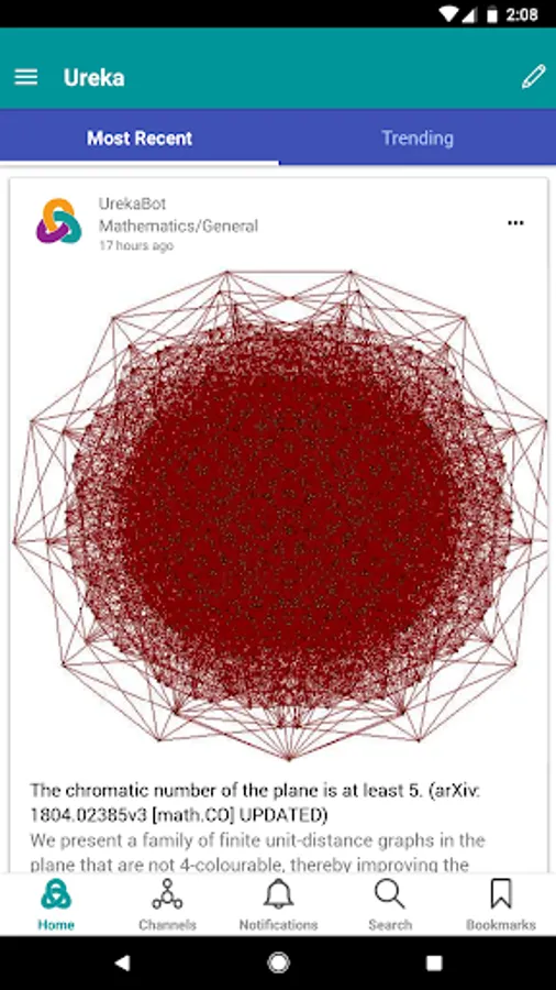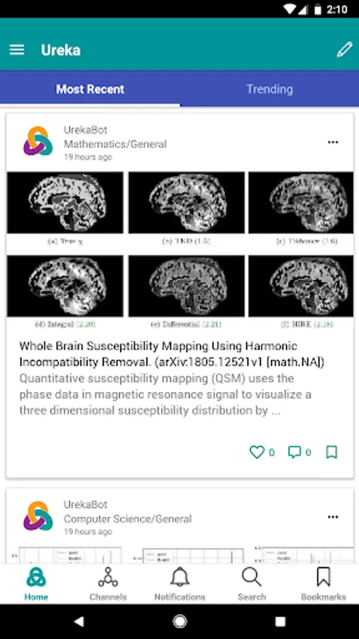 Ureka combines all of the best features of Instagram, Twitter, Slack, Linked-In, AcademicJobs, and more. Key features and capabilities include: post an image and description of the results to relevant science channels; subscribe and follow scientific channels specific to your interests to see the latest results in that research area; all channels have a trending feed and a time-dependent feed, so you can see the most recent and/or the most active posts; measurable in-app metrics that track user impact and activity, which can be used in the future for hiring practices and in-app awards. Future versions will include job hunting tools, conference support, private sub-channels, and animated posts.
