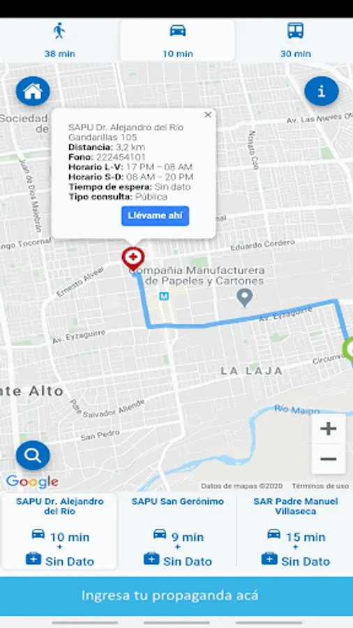In times of emergency we give emergency centers closest to you and waiting times according to your approximate gravity. Save time and go to the centers most uncongested in your city.