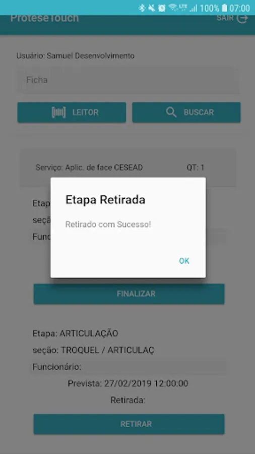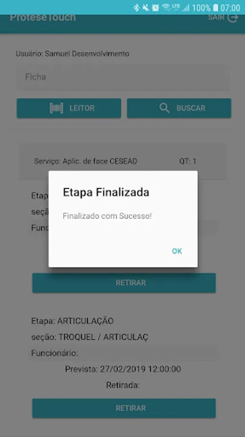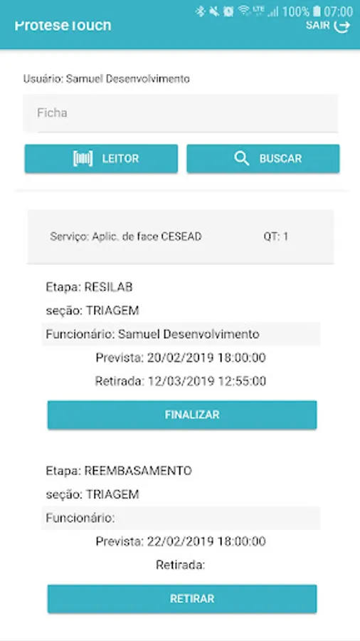 ProteseTouch was developed to facilitate day-to-day production of the dental laboratory, allowing employees to start, finish and reopen the production stages of work.