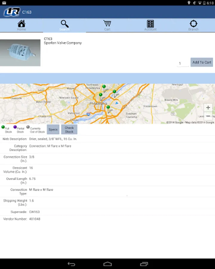 * Branch Locator: Find the closest United Refrigeration branch using your current location or by simple zip code search, and receive turn-by-turn directions. It also enables you to easily contact the nearby branches via phone or e-mail with the virtual touch of a button.