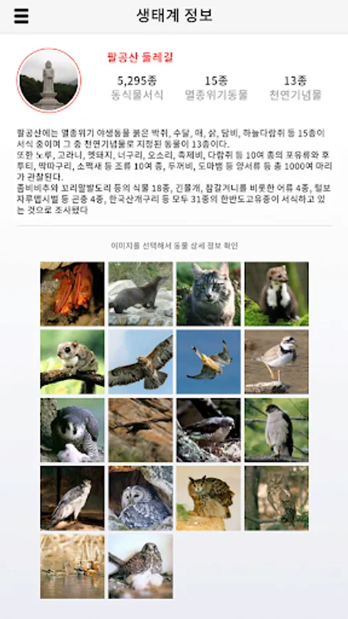 * Meet endangered animal friends living in Palgongsan through AR mode.