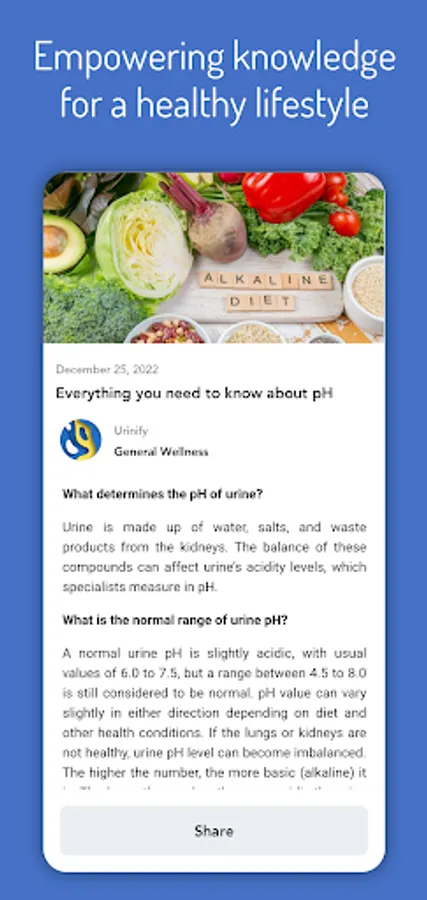 The Urinify app is not a medical device and is expressly intended for informational purposes only. It does not offer, provide, or claim to provide medical advice, diagnosis, or treatment. Users of the Urinify App should not rely on it as a substitute for professional medical advice and consultation with qualified healthcare professionals. The app does not endorse specific medical treatments or therapies and does not constitute a replacement for the expertise of licensed healthcare providers. Users must exercise their judgment and seek professional medical advice for any health concerns or conditions. By using the Urinify App, users acknowledge and accept these terms, understanding that it is not a substitute for medical judgment and that the app's creators and developers disclaim any liability for actions taken based on the information provided within the app. It is the user's responsibility to prioritize their health and well-being through appropriate medical consultation.