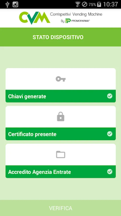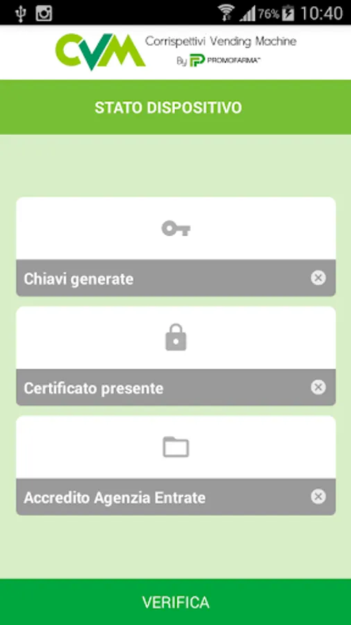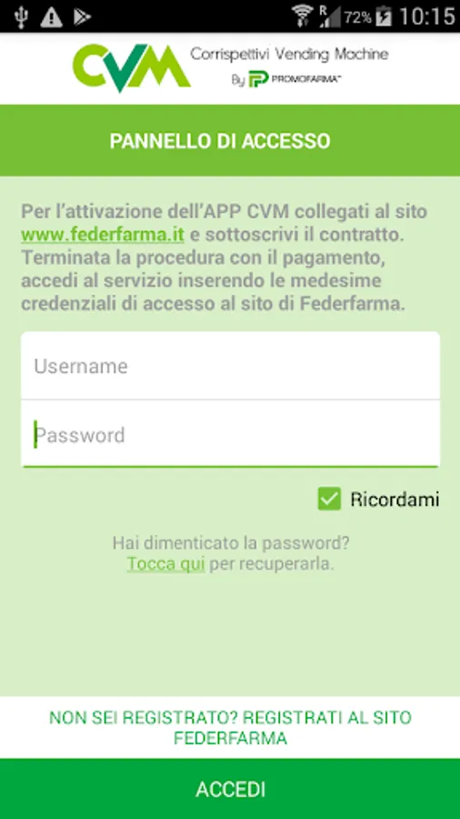 L 'APP CVM allows you to send to the Revenue of vending fees (Vending Machine) associated to Federfarma Pharmacies