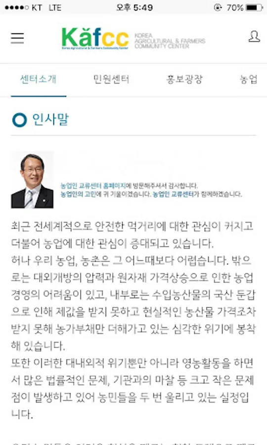 농업인교류센터는 민원해결의 창구임과 동시에 그 기능을 넘어 정책기조 및 핵심내용을 검증하고 현장 중심적 정책을 수립하는 일을 수행하고 있습니다. 또한 정책당국과 농민들 사이의 교두보로서 나아가 민관협력의 농정체계를 구축하는 첫 발판이라 할 수 있습니다.농업경영 중 어려운 일이 있으시거나 문제에 봉착하시면 언제든지 농업인교류센터를 통해 연락주십시오. 성심을 다해 여러분의 고민을 해결해 드리겠습니다. 농림축산식품부와 한농연이 실시하는 농업인교류센터에 많은 성원을 부탁드립니다. 감사합니다.