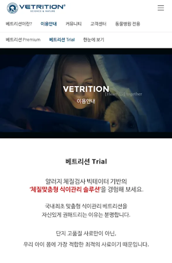 Vetition is the first knowledge-based next-generation diet management solution that tailors the 'best feed' for your child's constitution.