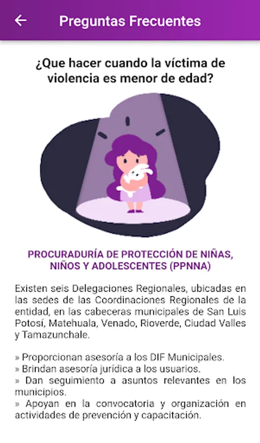 Put a stop to it! It is an application that was created with resources from the Fund for the Welfare and Advancement of Women (FOBAM) aimed mainly at children and adolescents (NNA) with the aim of promoting strategies for the prevention and care of violence through the performance of a test that allows them to identify it, as well as the incorporation of a directory with the contact details of the instances responsible for the care, referral and counter-referral of NNA in terms of prevention, detection, care and reporting of violence and / or sexual abuse.