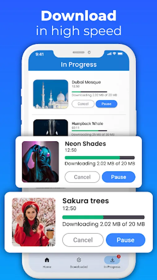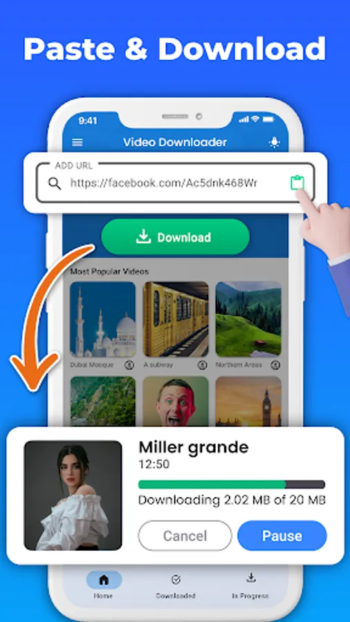 All your downloaded videos will be available to you when even if you are offline. Easily play, resume, save, and delete videos with a built-in video player and also share downloaded videos with friends. You can download high-quality 4k videos with our user-friendly Free video downloader app.