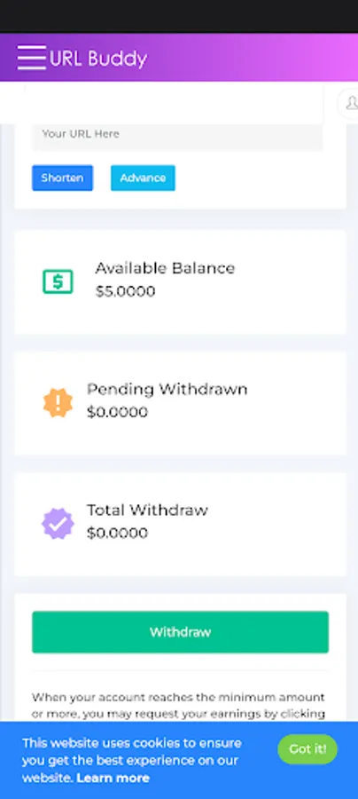 The URL Buddy referral program is a great way to spread the word of this great service and earn even more money with your short links! Refer friends and receive 20% of their earnings for life!
