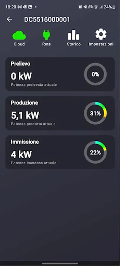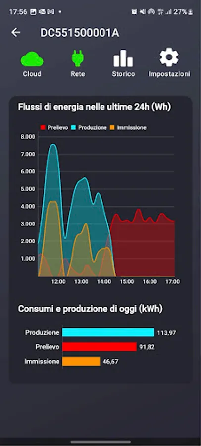 − current data such as energy withdrawn, fed in and produced in the last quarter of an hour (with relative daily profile) and instantaneous power