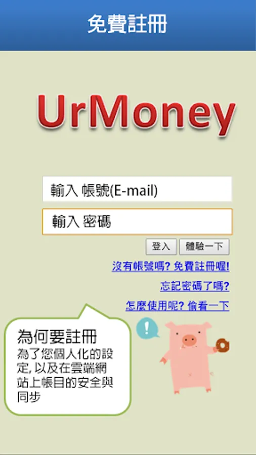 由於要將您寶貴的記帳資料上傳到雲端, 需要有帳號密碼作認證與保護