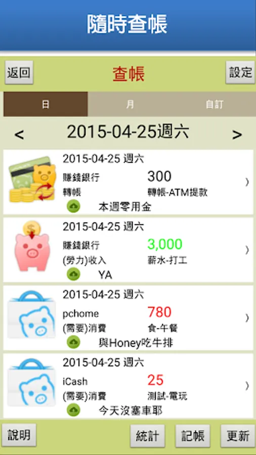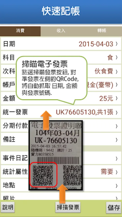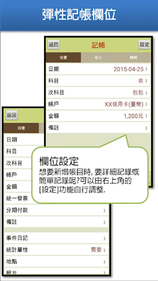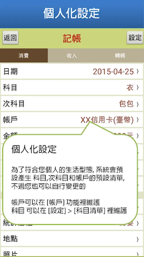 1. 記錄 消費, 收入, 和 轉帳的帳目