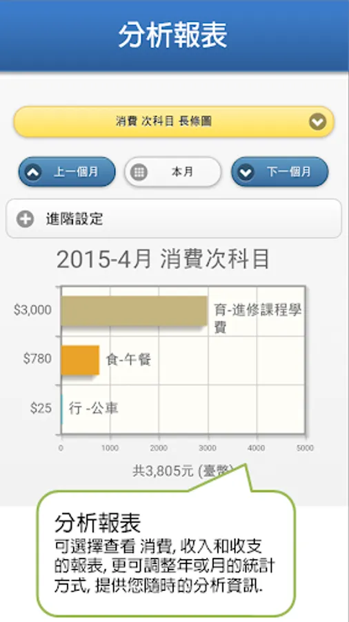 簡單的操作介面將帶著您入門, 專業的統計資料可幫助您輕鬆取得自己的理財資訊.