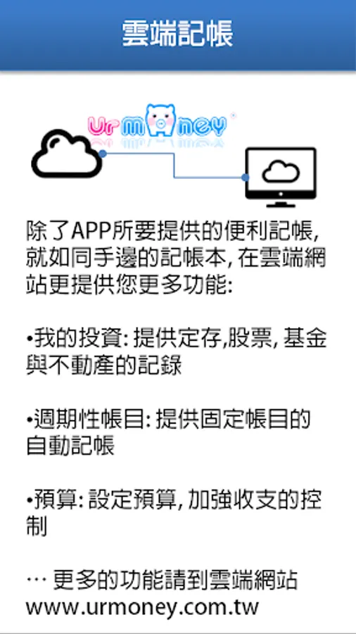 因為記帳資料保存在雲端網站(https://www.urmoney.com.tw)
