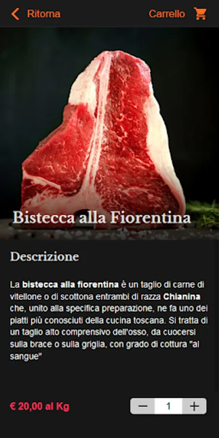 App of the Tuscan Butcher "La carne é Fantasia". Quick orders, recipes, curiosities about cooking and the preparation of meat in typical Tuscan cuisine.