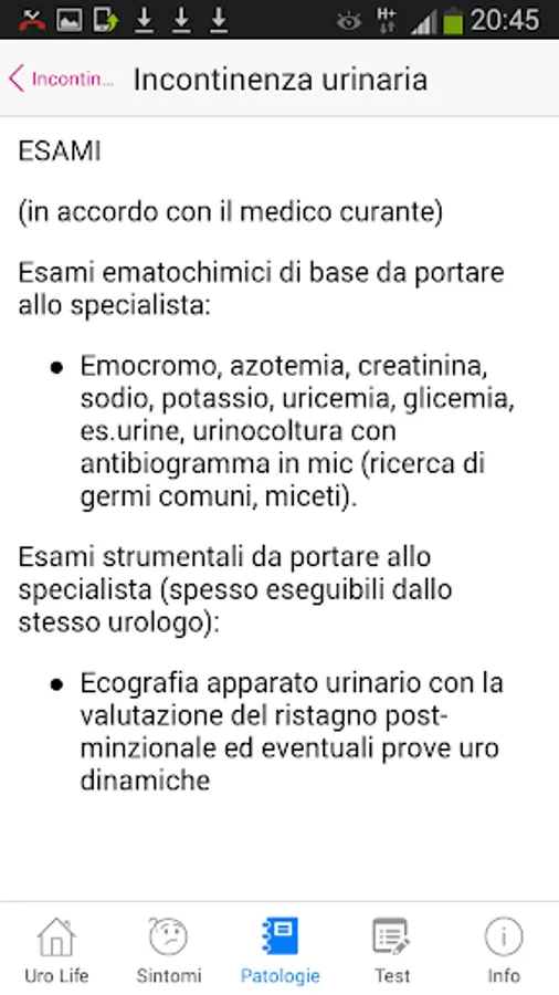 You can download it even in the absence of symptoms to always have a useful tool in the event of symptoms uro / andrological or simple curiosity about how to deal with any disease.